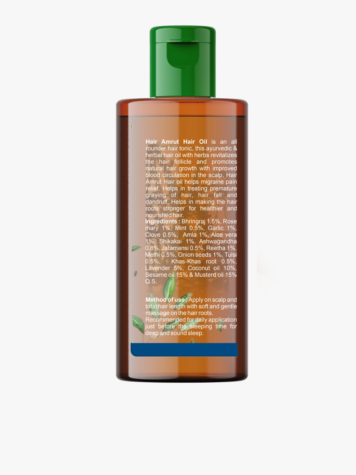 Ingredients : Bhringraj 1.5%, Rose mary 1%, Mint 0.5%, Garlic 1%, Clove 0.5%, Amla 1%, Aloe